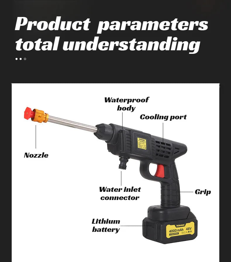 【Cordless Handheld Water Gun】Lithium Battery Rechargeable High-Pressure Washer - Portable Car Wash Sprayer for Home & Garden