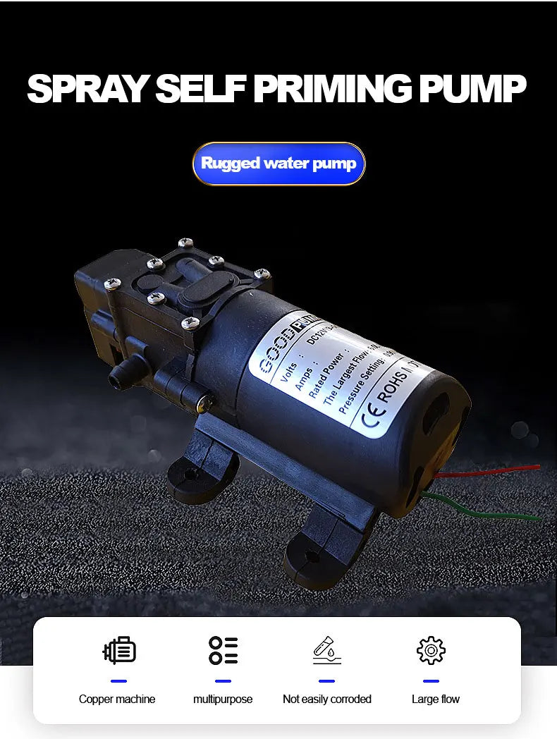 DC 12V 60W 120PSI 5L/Min High Pressure Diaphragm Water Pump Micro Electric Water Pump Self Priming Pump Water Sprayer Car Wash