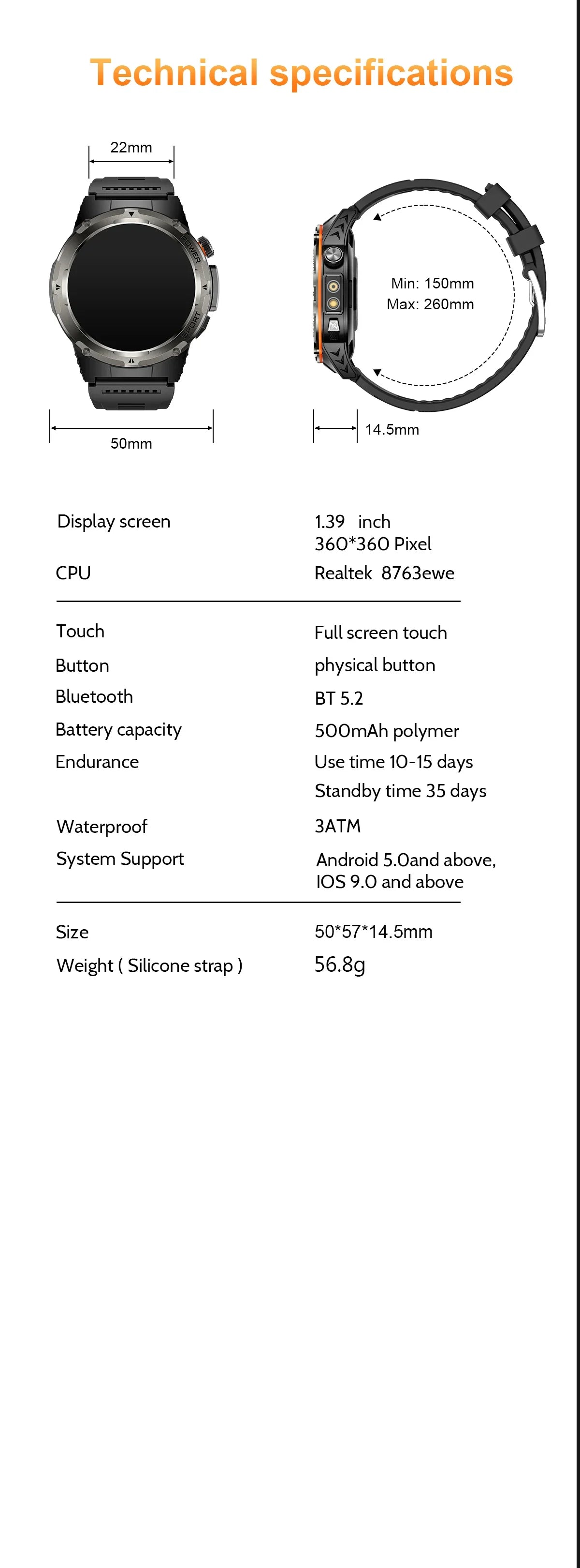 Function 4: 1.39 inch AMOLED HD display screen Outdoor sports watch